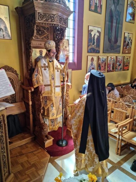 Προ της απολύσεως της Θείας Λειτουργίας ο Θεοφιλέστατος απένειμε το οφφίκιο του Αρχιμανδρίτου στον π. Νικόλαο-Ελευθέριο Price.