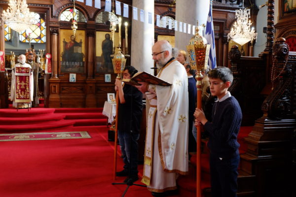 Εν συνεχεία τελέσθηκε η Δοξολογία επί τη εθνική εορτή της 28ης Οκτωβρίου και η Αρτοκλασία, ενώ ο χορός των ιεροψαλτών απέδωσε μετά κατανύξεως τους ύμνους της ημέρας.