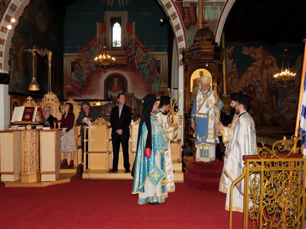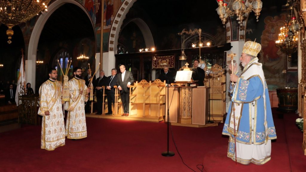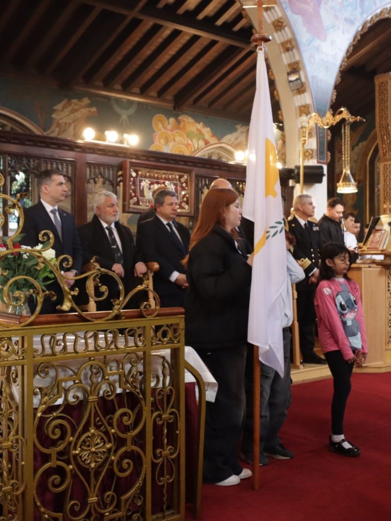 Ευθύς μετά την Θεία Λειτουργία, τελέσθηκε η καθιερωμένη ετησία Επιμνημόσυνος Δέηση υπέρ αναπαύσεως των ψυχών των θυμάτων της τουρκικής εισβολής του 1974 εν Κύπρω, ως και πάντων των κατά καιρούς υπέρ της ελευθερίας της Κύπρου και της Ελλάδος αγωνισαμένων και πεσόντων. Στην Ιερά Ακολουθία παρέστησαν ο κ. Κυριάκος Κούρος, Ύπατος Αρμοστής της Κυπριακής Δημοκρατίας στο Ηνωμένον Βασίλειο, και ο κ. Χρήστος Καραολής, Πρόεδρος της Εθνικής Κυπριακής Ομοσπονδίας Ηνωμένου Βασιλείου. Αμφότεροι απηύθυναν χαιρετισμό προς το εκκλησίασμα, προσφέροντες λόγους περισυλλογής, μνήμης και αδιαλείπτου ελπίδος διά την επικράτηση της δικαιοσύνης και της συνδιαλλαγής.