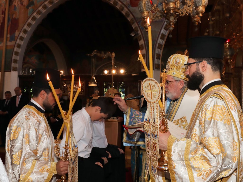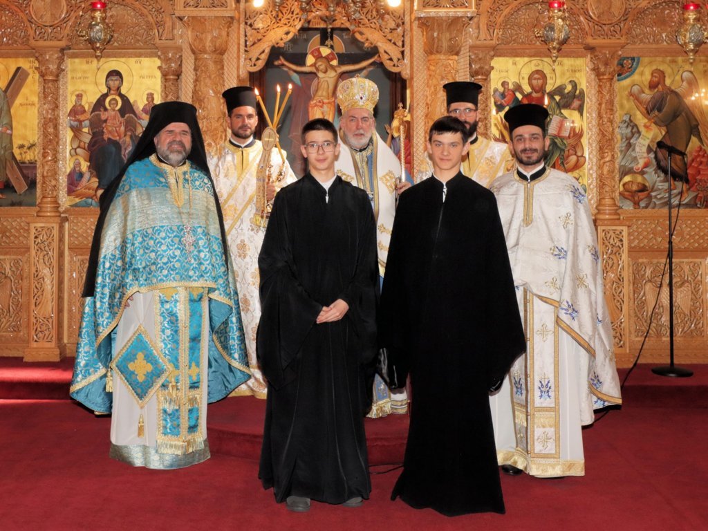 Μετά το πέρας της Θείας Λειτουργίας, ο Σεβασμιώτατος τέλεσε την εις Αναγνώστας χειροθεσία των κ.κ. Δαβίδ Δοχιτοίου Μπαράου και Αλεξάνδρου Κότρο. Ο Σεβασμιώτατος τόνισε την ιερά ευθύνη την οποίαν αναλαμβάνουν οι Αναγνώστες εντός της Εκκλησίας, προτρέπων αυτούς όπως διακονήσουν μετά ταπεινοφροσύνης, ευλαβείας και αφοσιώσεως στην λειτουργική ζωή της Κοινότητος.