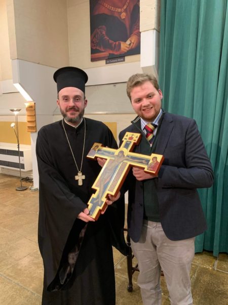 Ως σύμβολο χριστιανικής ενότητας ο π. Νήφων προσέφερε στον Πρόεδρο της Newman Society μουσειακό αντίγραφο μιας ιταλοβυζαντινής εικόνας της Σταύρωσης του Χριστού, η οποία φέρει επιγραφή που αναφέρει το γεγονός. Τα μέλη της Newman Society ευχαρίστησαν θερμά τον Πρωτοσύγκελλο και εξέφρασαν την επιθυμία τους να επισκεφθούν σύντομα τον ιστορικό Καθεδρικό Ι. Ναό της του Θεού Σοφίας στο Bayswater του Λονδίνου.