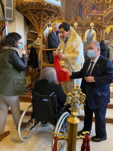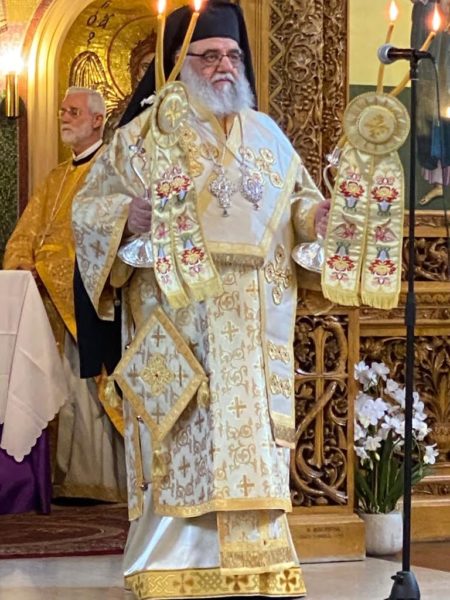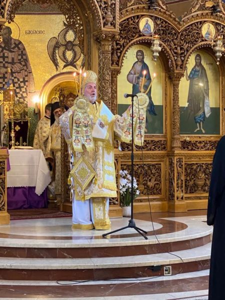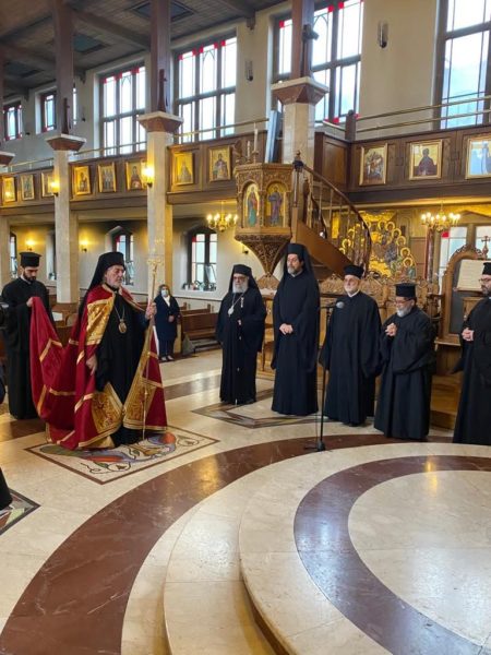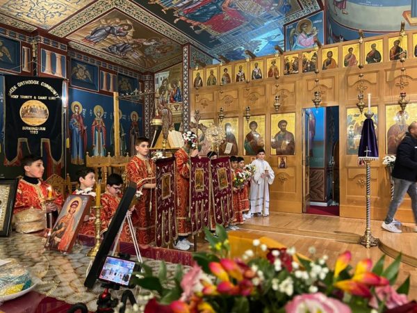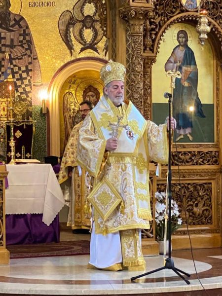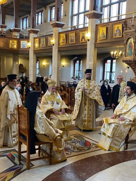 Τρισαρχιερατική Θεία Λειτουργία ετελέσθη στον Ιερό Καθεδρικό Ναό Κοιμήσεως της Θεοτόκου Wood Green, στο Βόρειο Λονδίνο, την Κυριακή της Σταυροπροσκυνήσεως 27 Μαρτίου 2022.