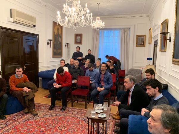 Με πρωτοβουλία του κ. Θέμη Προδρομάκη, ο Άρχων Πρωτοψάλτης της ΜτΧΕ κ. Παναγιώτης Νεοχωρίτης επισκέφτηκε το Λονδίνο και είχε την ευκαιρία να συναντήσει ιεροψάλτες της Αρχιεπισκοπής Θυατείρων στο Αρχιεπισκοπικό Μέγαρο την Τετάρτη 22 Ιανουαρίου.