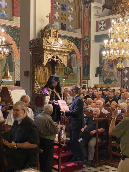 Παρέστησαν Υπουργοί της Κυβερνήσεως, Βουλευτές και οι τοπικές Αρχές. Μετά το πέρας της Θείας Λειτουργίας, ο Προϊστάμενο του Ιερού Ναού, Πρωτοπρεσβύτερος κ. Παναγιώτης Ντουρής, προσέφερε στον Θεοφιλέστατο ιερά εικόνα του Αποστόλου και Ευαγγελιστού Λουκά, ενώ στη συνέχεια ακολούθησε λιτανεία πέριξ του Ι. Ναού και επίσημο γεύμα.