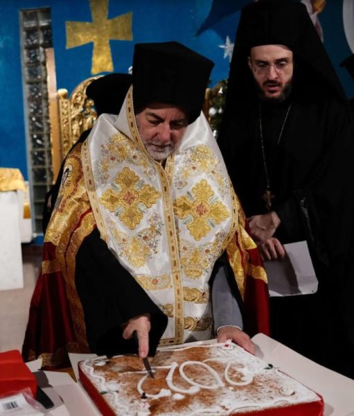 Ακολούθως ευλόγησε και διένειμε την πρωτοχρονιάτικη βασιλόπιτα και όλοι μαζί έψαλλαν τα παραδοσιακά κάλαντα.