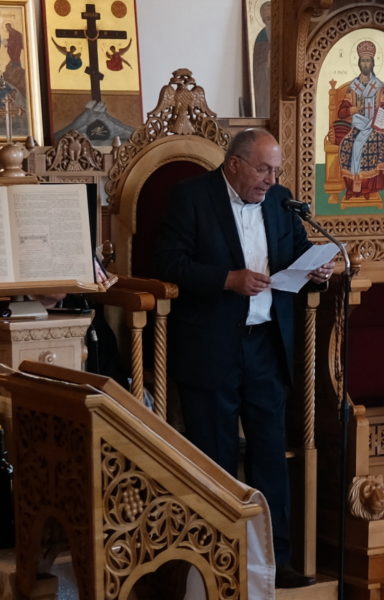 Ο Θεοφιλέστατος καλωσόρισε τους προσκεκλημένους και ιδιαιτέρως τον Δήμαρχο Αραδίππου που ταξίδεψε από την Κύπρο για να τιμήσει την Κοινότητα, ευχήθηκε στο εκκλησίασμα και μετέφερε τις ευχές του Σεβασμιωτάτου Αρχιεπισκόπου Θυατείρων και Μεγάλης Βρεταννίας κ. Νικήτα.