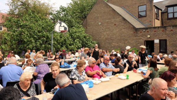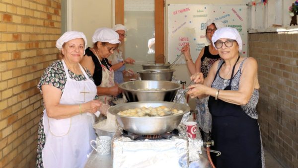 Κατόπιν, παρατέθηκε γεύμα από την Κοινότητα σε παρακείμενη αίθουσα ενώ στον προαύλιο χώρο του Ιερού Ναού πραγματοποιήθηκε το πανηγύρι της Κοινότητας που λαμβάνει χώρα επί σειρά ετών με τη συμμετοχή πλήθους κόσμου. Στο γεύμα εορτάστηκαν και τα γενέθλια της Προέδρου της Βοηθητικής Αδελφότητος Μερόπης-Μαίρη Λιβέρα.