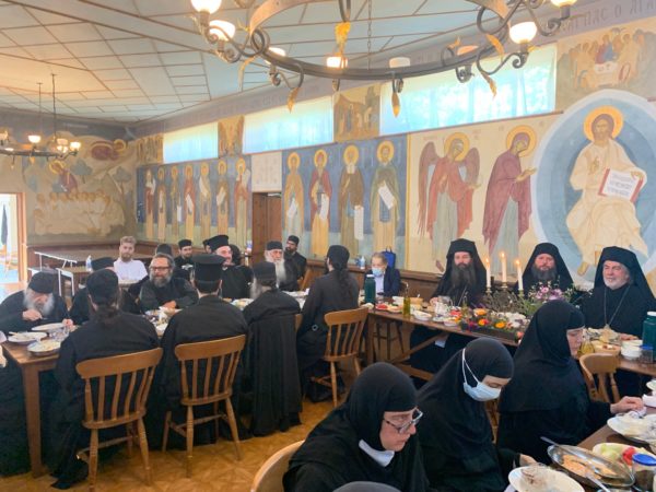 Μετά το πέρας της Θείας Λειτουργίας, ο Αρχιεπίσκοπός Θυατείρων και Μεγάλης Βρεταννίας, ο Θεοφιλέστατος Επίσκοπος Ιλίου και ο Καθηγούμενος της Ιεράς Μονής Αρχιμανδρίτης Πέτρος καθώς και οι λοιποί κληρικοί, και άπασα η μοναστική αδελφότητα συμμετείχαν στο γεύμα που παρετέθη στην τράπεζα της Ιεράς Μονής.