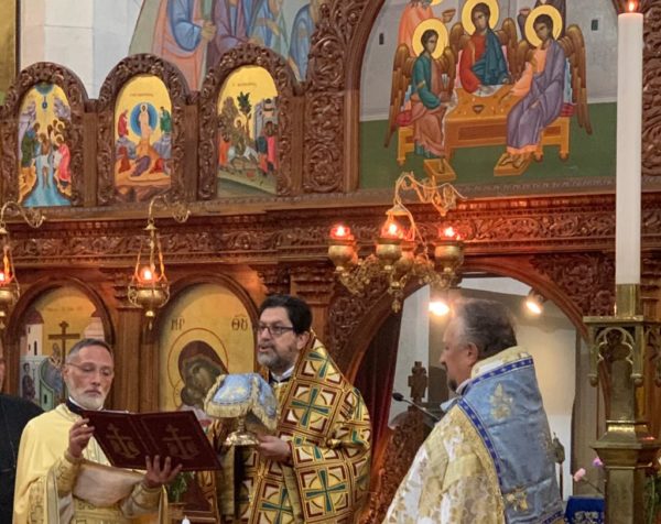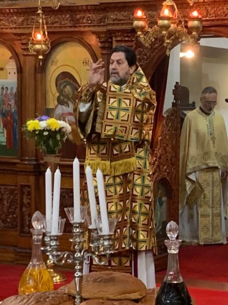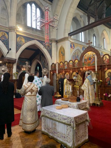 Ο Θεοφιλέστατος Επίσκοπος Κλαυδιουπόλεως κ. Ιάκωβος, εκπροσωπώντας τον Σεβασμιώτατο Αρχιεπίσκοπο Θυατείρων και Μεγάλης Βρετανίας κ. Νικήτα, χοροστάτησε κατά τον Όρθρο και τέλεσε τη Θεία Λειτουργία στον πανηγυρίζοντα Καθεδρικό Ναού του Τιμίου Σταυρού και Αρχαγγέλου Μιχαήλ στο Golders Green Β. Λονδίνου, χθες, ανήμερα της εορτής, 14 Σεπτεμβρίου.