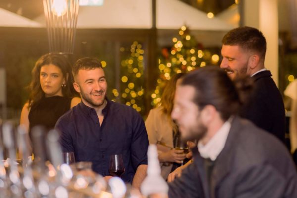 Στην Χριστουγεννιάτικη εκδήλωση, η οποία περιελάμβανε πλούσιο μπουφέ φαγητών και ποτών καθώς και ζωντανή χορευτική μουσική από τον καλλιτέχνη κ. Ανδρέα Λιμπέρο, παραβρέθηκαν εκατό περίπου νέοι και νέες.