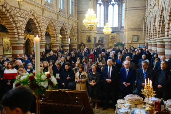 Μετά τη λιτάνευση των ιερών εικόνων τελέσθηκε μνημόσυνο υπέρ αναπαύσεως των ψυχών των ευεργετών του Καθεδρικού, των θυμάτων του πρόσφατου σιδηροδρομικού δυστυχήματος στην Ελλάδα και του φονικού σεισμού στην Συρία και την Τουρκία.