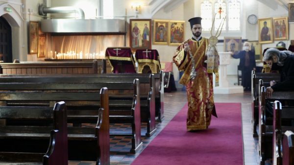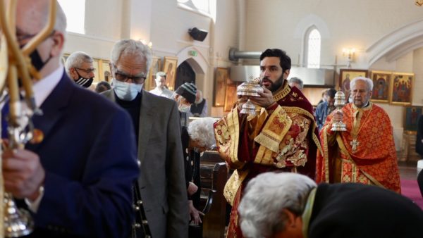 Κατ’ εντολή του Σεβασμιωτάτου Αρχιεπισκόπου Θειατείρων και Μεγάλης Βρεταννίας κ. Νικήτα, ο Αρχιδιάκονος Γεώργιος κήρυξε τον Θείο Λόγο, αναφερόμενος στο παράδειγμα των γενναίων Μυροφόρων Γυναικών που δεν κάμφθηκαν από τους κινδύνους αλλά με τόλμη και πίστη στον Ερχομό του Λυτρωτή, πορεύτηκαν προς το κενό μνήμα του Χριστού και έγιναν εκείνες οι πρώτες που άκουσαν το χαρμόσυνο μήνυμα της Αναστάσεως.