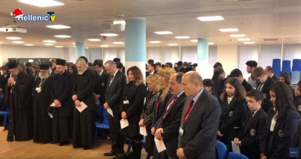 Τον Σεβασμιώτατο συνόδευαν ο Επίσκοπος Τροπαίου κ. Αθανάσιος και άλλοι κληρικοί. Επίσης, παρόν ήταν στην αίθουσα και πολιτικοί όπως ο Ελληνοκύπριος βουλευτής Πάμπος Χαραλάμπους και η βουλευτής του Βορείου Λονδίνου Τερέζα Βίλιερς. Στο βίντεο που ακολουθεί θα παρακολουθήσουμε την θερμή υποδοχή που έκαναν εκπαιδευτικοί και μαθητές στον Αρχιεπίσκοπο, σύντομη ομιλία του διευθυντή του σχολείου , ενός λεπτού σιγή εις μνήμην του μακαριστού πρώην Αρχιεπισκόπου κ. Γρηγορίου και προσευχή από τους μαθητές του σχολείου.