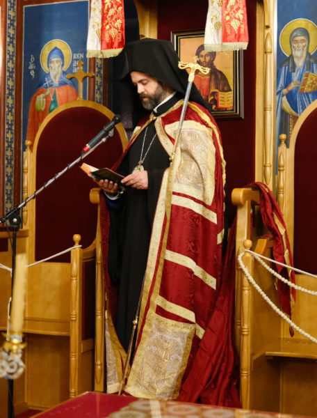 Χοροστάτησε και κήρυξε τον θείο λόγο ο Θεοφιλέστατος Επίσκοπος Μελιτηνής κ. Μάξιμος, πλαισιούμενος υπό του Αρχιμ. κ. Χριστοδούλου Κοκλιώτη και του Οικονόμου κ. Νικολάου Λουκά Καραφυλλίδη.