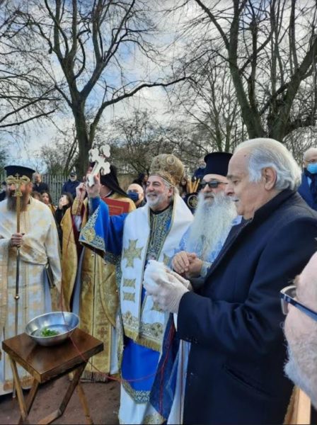 Ο Θεοφιλέστατος μετά το τέλος της Θείας Λειτουργίας μετέβη στις όχθες του ποταμού Τάμεση για την Τελετή του Καθαγιασμού των Υδάτων.
