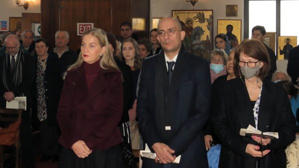 Συλλειτούργησαν ο Πρωτοσύγκελλος της Ι. Αρχιεπισκοπής Αρχιμ. κ. Νήφων Τσιμαλής, ο ιερατικώς Προϊστάμενος του Ι. Ναού Αρχιμ. κ. Βησσαρίων Κοκλιώτης, ο Πρεσβύτερος κ. Δαυίδ Gilchrist και ο Αρχιδιάκονος κ. Γεώργιος Τσουρούς.