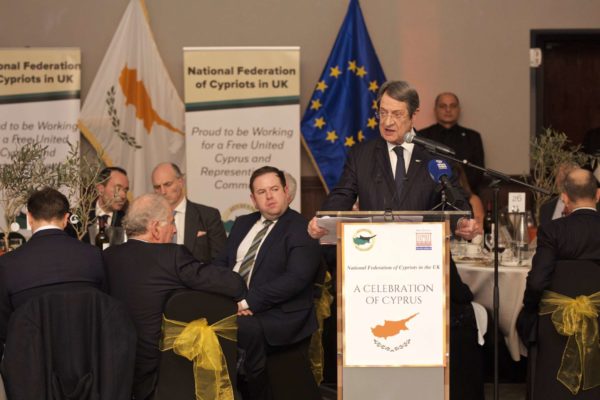Η Εθνική Ομοσπονδία Κυπρίων στο Ηνωμένο Βασίλειο διοργάνωσε το Σάββατο, 14 Ιανουαρίου 2023, εορταστικό Δείπνο για την επέτειο της ανεξαρτησίας της Κύπρου και την μεγάλη προσφορά της κυπριακής διασποράς στην Κυπριακή Δημοκρατία και στο Ηνωμένο Βασίλειο. Επίτιμος προσκεκλημένος και κεντρικός ομιλητής αυτής της εορτής ήταν ο Πρόεδρος της Κυπριακής Δημοκρατίας κ. Νίκος Αναστασιάδης.