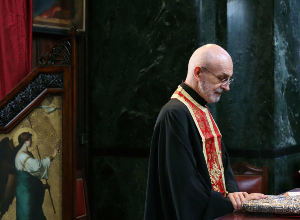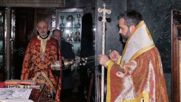 Συλλειτούργησαν ο ιερατικώς Προϊστάμενος, Αρχιμανδρίτης του Οικουμενικού Θρόνου κ. Θεωνάς Μπακάλης, ο Ιδιαίτερος Γραμματεύς του Αρχιεπισκόπου, Αρχιμ. κ. Νήφων Τσιμαλής και ο Αρχιερατικός Επίτροπος, Πρωτοπρεσβύτερος κ. Κωνσταντίνος Γαριβαλδινός.