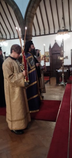 Προεξήρχε ο Θεοφιλέστατος Επίσκοπος Ιλίου κ. Ραφαήλ, συλλειτουργών μετά του Πανοσιολ. Αρχιμανδρίτη κ. Μάρκου Mitchell.