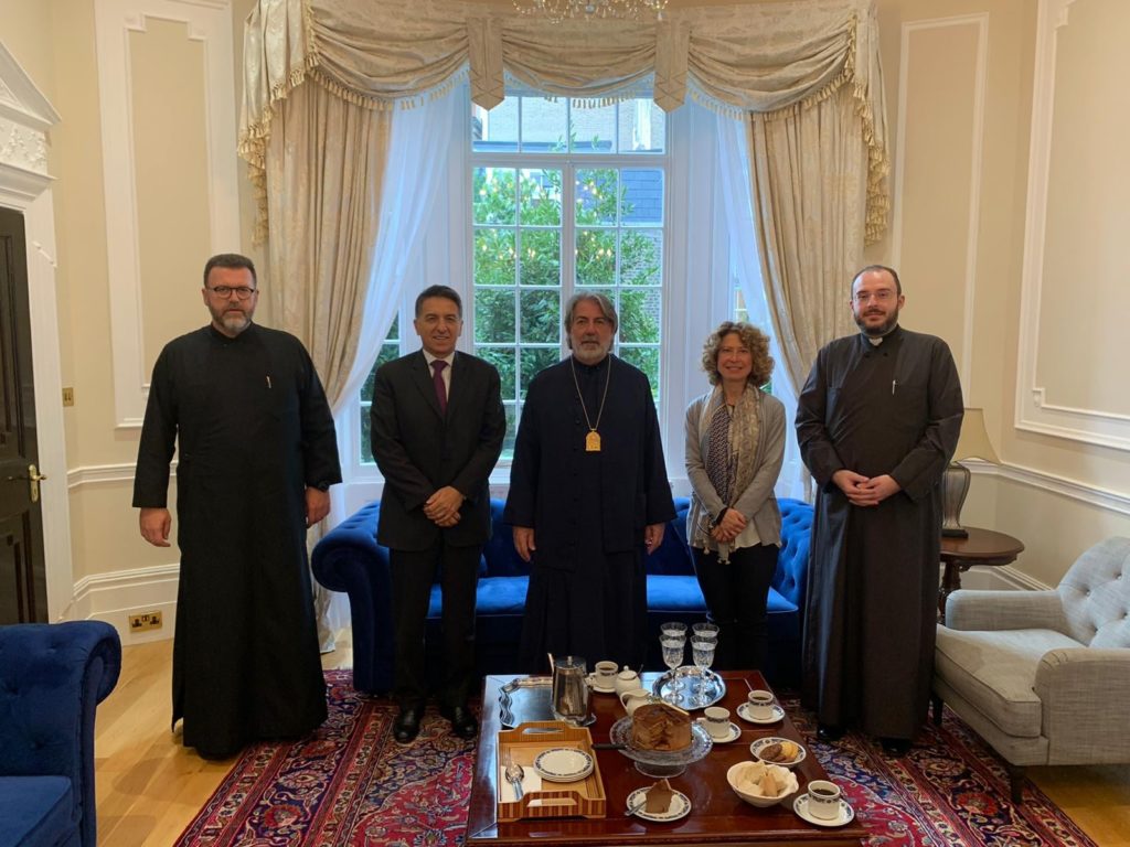 Ο νέος Πρέσβης της Ελλάδος στο Λονδίνο, Εξοχώτατος κ. Ιωάννης Ραπτάκης συνοδευόμενος από την σύζυγό του Εξοχωτάτη κα Σουλτανοπούλου Γεωργία Γενική Προξένο της Ελλάδος στην Κωνσταντινούπολη, πραγματοποίησε εθιμοτυπική επίσκεψη γνωριμίας επί τη αναλήψη των καθηκόντων του μετά του Σεβασμιωτάτου Αρχιεπισκόπου Θυατείρων και Μεγάλης Βρεταννίας κ. Νικήτα στο Μέγαρο της Αρχιεπισκοπής Θυατείρων, την Τρίτη 6 Οκτωβρίου 2020.