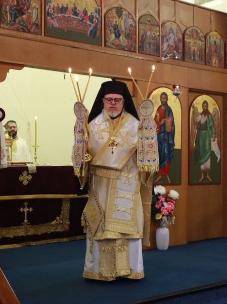 Μετά το πέρας της λατρευτικής συνάξεως, παρετέθη εορταστικό γεύμα στους χώρους της Κοινότητος. Ο Πρόεδρος κ. Ευάγγελος Ασημάκος καλωσόρισε θερμώς τον Σεβασμιώτατο, εκφράζοντας την ευγνωμοσύνη των μελών της ενορίας για την παρουσία του και το ποιμαντικό του ενδιαφέρον.