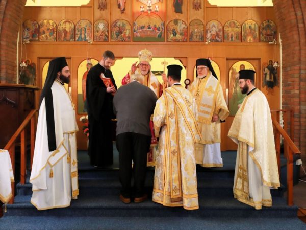 Προ της απολύσεως της Θείας Λειτουργίας, ο Αρχιεπίσκοπος προέβη στην χειροθεσία του κ. Michael Trend εις Αναγνώστην. Ευχήθηκε στον νέο διακονητή δύναμη και σταθερότητα κατά την επιτέλεση των καθηκόντων του εντός του εκκλησιαστικού σώματος.