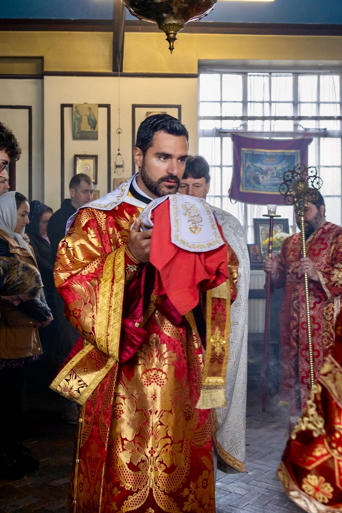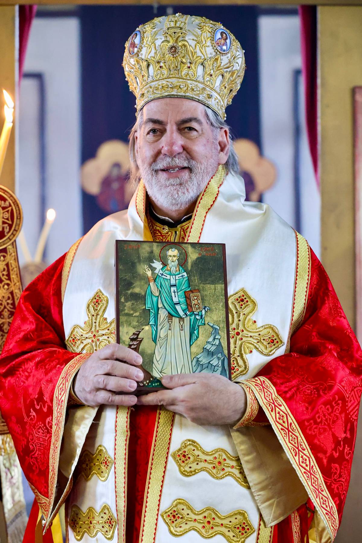 Μετά το πέρας της Θείας Λειτουργίας, ο Αιδεσιμολογιώτατος Οικονόμος π. Τιμόθεος Pearce προσφώνησε τον Σεβασμιώτατο και του προσέφερε, εκ μέρους της Κοινότητος, εικόνα του Αγίου Δαβίδ της Ουαλίας, παραγγελθείσα ειδικώς για την περίσταση. Ο Άγιος Δαβίδ, πολιούχος και προστάτης της Ουαλίας, παραμένει ζωντανό πρότυπο πίστεως, ταπεινοφροσύνης και αταλάντευτης μαρτυρίας εν Χριστώ.