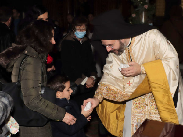 Στο τέλος της Θείας Λειτουργίας εψάλη η Δοξολογία επί τη πρώτη του Νέου Έτους και ο Σεβασμιώτατος στη συνέχεια ευλόγησε την πρωτοχρονιάτικη Βασιλόπιτα.