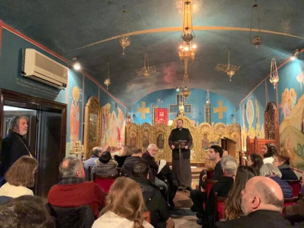 Πραγματοποιήθηκε, χθές, το βράδυ, 3 Μαρτίου 2020, η πρώτη ομιλία του Πανοσιολ. Αρχιμ. Νήφωνα Τσιμαλή με θέμα “Η Αγία Μεγάλη Τεσσαρακοστή” στο Αρχιεπισκοπικό Παρεκκλήσιο της Ιεράς Αρχιεεπισκοπής Θυατείρων και Μεγάλης Βρετανίας, παρουσία του Σεβ Αρχιεπισκόπου, κ. Νικήτα, κληρικών και πλήθος πιστών από την περιοχή του Λονδίνου.