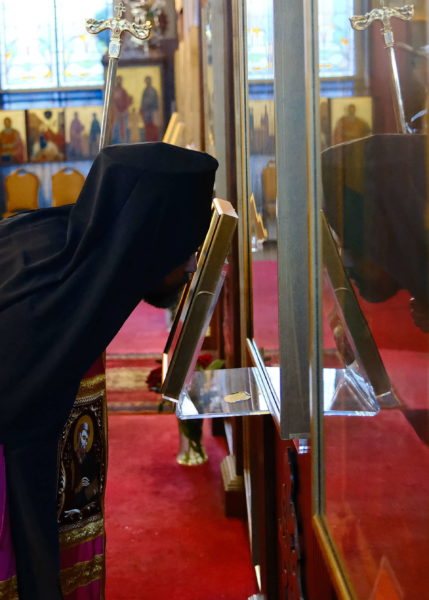 Ο Θεοφιλέστατος χοροστάτησε στον Όρθρο και προεξήρχε της Θείας Λειτουργίας, συμπαραστατούμενος υπό του ιερατικώς Προϊσταμένου του Ιερού Ναού π. Σταύρου Μπόζου. Μετά τη Θεία Λειτουργία, ο Επίσκοπος, τον οποίο υποδέχθηκε θερμά η ελληνορθόδοξη Κοινότητα, ευλόγησε την πρωτοχρονιάτικη βασιλόπιτα.