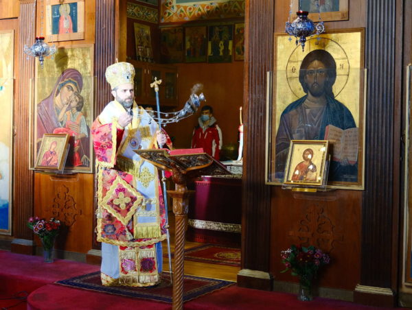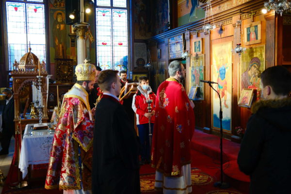Ο Θεοφιλέστατος χοροστάτησε στον Όρθρο και προεξήρχε της Θείας Λειτουργίας, συμπαραστατούμενος υπό του ιερατικώς Προϊσταμένου του Ιερού Ναού π. Σταύρου Μπόζου. Μετά τη Θεία Λειτουργία, ο Επίσκοπος, τον οποίο υποδέχθηκε θερμά η ελληνορθόδοξη Κοινότητα, ευλόγησε την πρωτοχρονιάτικη βασιλόπιτα.