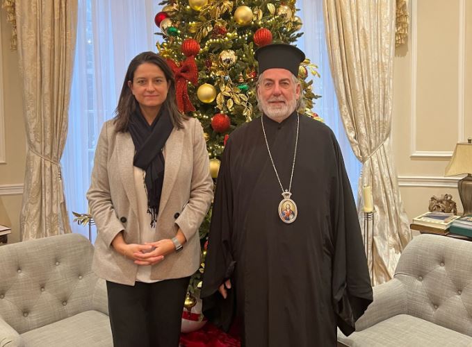 Μεταξύ των σταθμών επίσκεψης της κ. Κεραμέως ήταν και η Ιερά Αρχιεπισκοπή Θυατείρων και Μεγάλης Βρετανίας όπου είχε συνάντηση με τον Αρχιεπίσκοπο κ. Νικήτα με τον οποίο ανταλλάξανε σκέψεις για τον Ελληνισμό της περιοχής.
