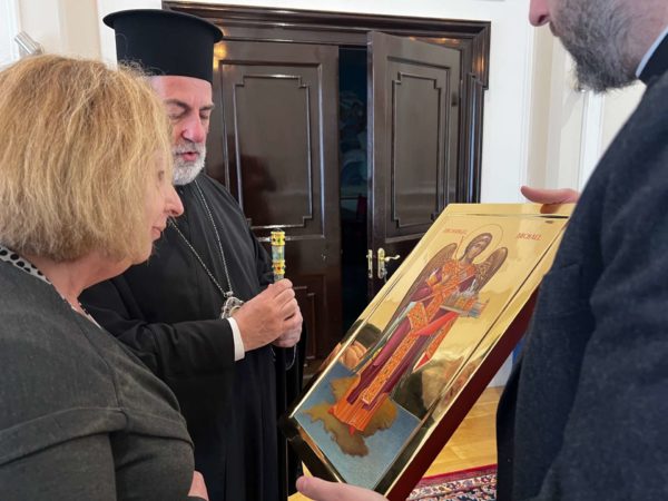 Μετά από ξενάγηση στο Παρεκκλήσιο της Ιεράς Αρχιεπισκοπής, η επίσκεψη ολοκληρώθηκε με ανταλλαγή ευχών και αναμνηστική φωτογραφία.