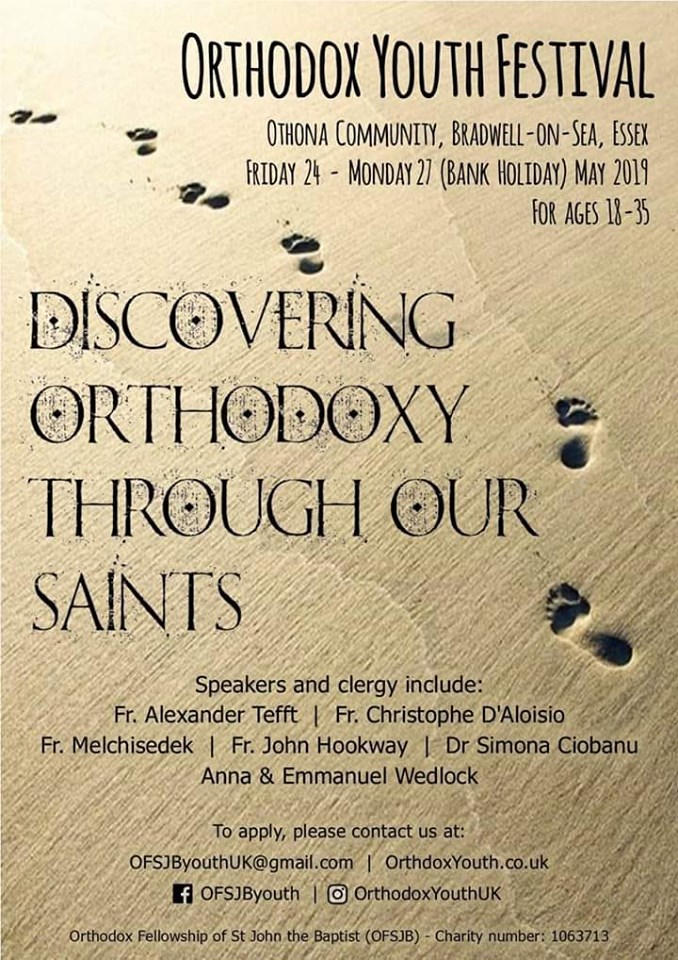 Πραγματοποιείται από την Παρασκευή 24 Μαΐου έως και τη Δευτέρα 27 Μαΐου το Ορθόδοξο Φεστιβάλ Νεολαίας στη Μεγάλη Βρετανία. Η ετήσια αυτή εκδήλωση, που διοργανώνεται από την Ορθόδοξη Κοινότητα Νεολαίας, απευθύνεται σε νέους ηλικίας 18 έως 35 ετών και φετινό της θέμα είναι “Ανακαλύπτοντας την Ορθοδοξία Μέσω των Αγίων Μας”.