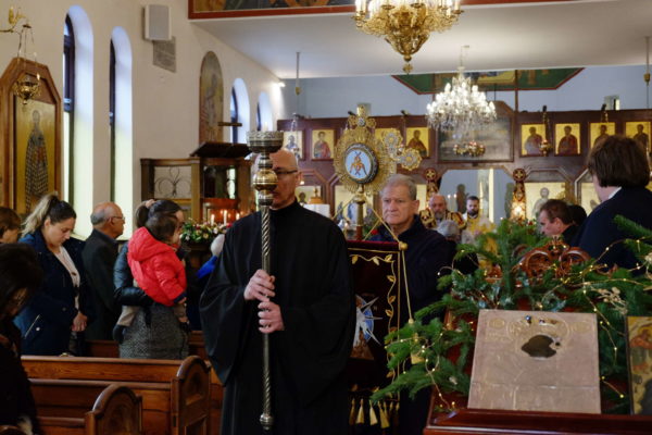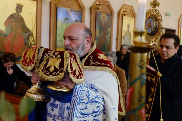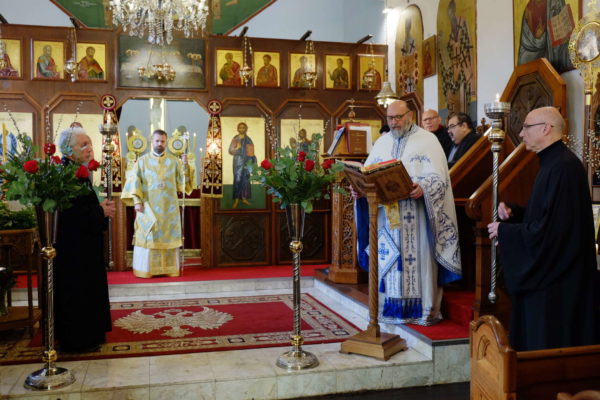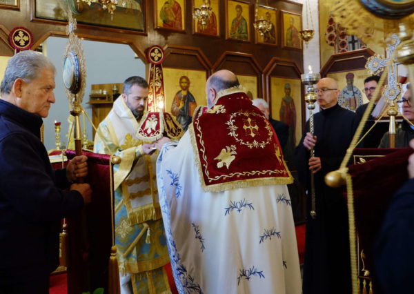Συλλειτούργησε ο ιερατικώς Προϊστάμενος του Ι. Ναού, Πρωτοπρεσβύτερος κ. Θεόδωρος Πολυβίου.
