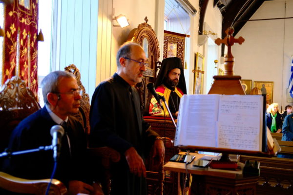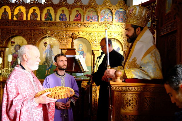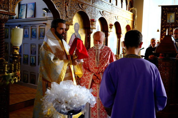 Ο Θεοφιλέστατος χοροστάτησε στον Όρθρο και προεξήρχε της Θείας Λειτουργίας, του ιερατικώς Προϊσταμένου Πρωτοπρεσβυτέρου π. Γρηγορίου Παλαμά Carpenter συλλειτουργούντος.