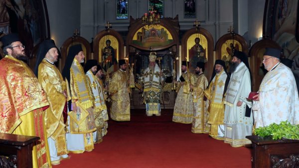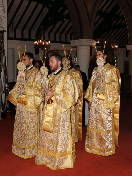 Μαζί με τον Αρχιεπίσκοπο συλλειτούργησαν οι Σεβασμιώτατοι Μητροπολίτες Ιρλανδίας κ. Ιάκωβος και Νιγηρίας κ. Νικόδημος, ο Θεοφιλέστατος Επίσκοπος Μελιτηνής κ. Μάξιμος, ο Επίσκοπος Ιλίου κ. Ραφαήλ και ο Επίσκοπος Κλαυδιουπόλεως κ. Ιάκωβος. Ο Μητροπολίτης Κολωνείας κ. Αθανάσιος παρέστη συμπροσευχόμενος.