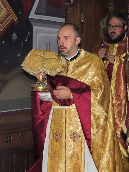 Μεταξύ των κληρικών που λειτούργησαν ήταν ο Αιδεσιμολογιώτατος Αρχιμανδρίτης Νήφων Τσιμάλης, Πρωτοσύγκελλος, ο Αιδεσιμολογιώτατος Πρωτοπρεσβύτερος Μιχαήλ Κουρεμέτης και ο Αιδεσιμολογιώτατος Πρεσβύτερος Γεώργιος Τσιαπούρδης. Υπηρέτησαν επίσης ο Αιδεσιμολογιώτατος Αρχιδιάκονος Δρ Γεώργιος Τσουρός και οι Αιδεσιμολογιώτατοι Διάκονοι Γρηγόριος-Παλαμάς Φλωρίδης, Γρηγόριος Κραβέιρο και Γεώργιος Ντάλλας.