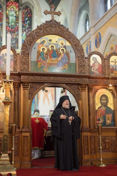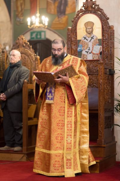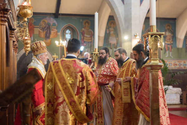 Συλλειτούργησε ο Θεοφιλέστατος Επίσκοπος Κλαυδιουπόλεως κ. Ιάκωβος. Συμμετείχαν δε οι Πανοσιολογιώτατοι Αρχιμανδρίτες π. Βησσαρίων Κοκλιώτης, Προϊστάμενος του Ναού, και π. Χριστόδουλος Κοκλιώτης, οι Αιδεσιμολογιώτατοι Οικονόμοι π. Δρ. Κρίστιαν Άξελμπεργκ και π. Νικόλαος Κόκκινος. Διηκόνησε και ο Πανοσιολογιώτατος Αρχιδιάκονος Δρ. Γεώργιος Τσουρούς.