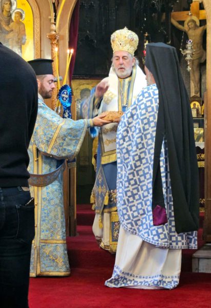 Μετά την Αρχιερατική Θεία Λειτουργία ακολούθησε θερμή δεξίωση στην κοινοτική αίθουσα, όπου ο Σεβασμιώτατος είχε την ευκαιρία να ευλογήσει και να συναντήσει το ευσεβές ποίμνιο.