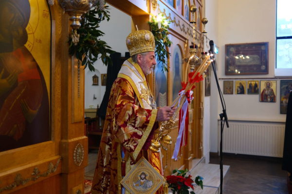 Προεξήρχε ο Σεβασμιώτατος Αρχιεπίσκοπος Θυατείρων και Μεγάλης Βρεταννίας κ. Νικήτας, συλλειτουργών μετά του Θεοφιλεστάτου Επισκόπου Μελιτηνής κ. Μαξίμου.