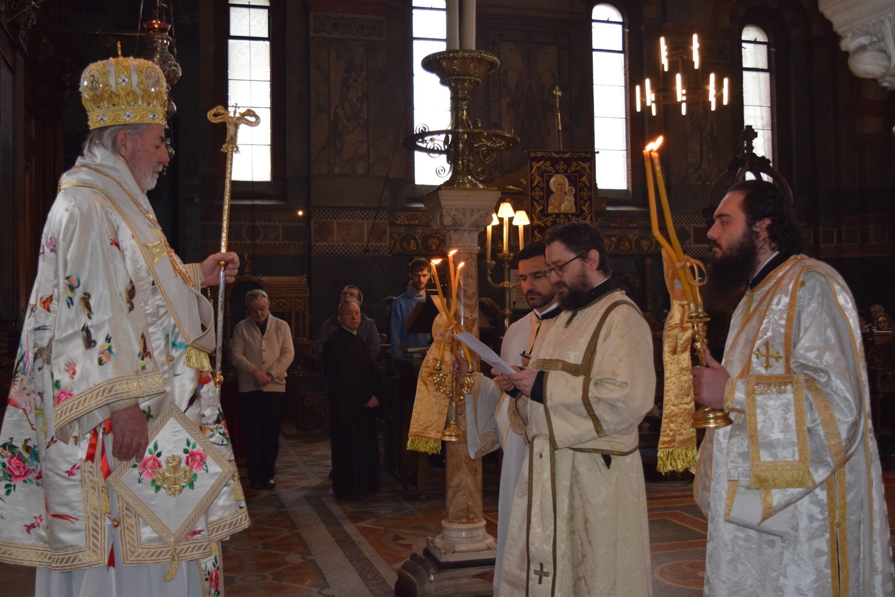 Η λειτουργική αυτή σύναξη, η οποία εντάσσεται στο πλαίσιο της καθιερωμένης και τακτικώς τελουμένης αγγλόφωνης Θείας Λειτουργίας της Κοινότητος κατά το πρώτο και τρίτο Σάββατο εκάστου μηνός, αποτέλεσε αφορμή πνευματικής ευφροσύνης, καθώς ετελέσθη η εις Διάκονον χειροτονία του κ. Jarod McBride υπό του Σεβασμιωτάτου Αρχιεπισκόπου Θυατείρων και Μεγάλης Βρεταννίας κ. Νικήτα. Στον νέο Διάκονο δόθηκε το όνομα «Θεόδωρος».