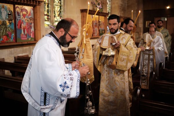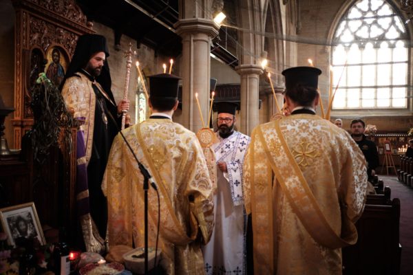 Ο Θεοφιλέστατος χοροστάτησε στον Όρθρο και προεξήρχε της Θείας Λειτουργίας, συλλειτουργούντων κληρικών της Ιεράς Αρχιεπισκοπής Θυατείρων και Μεγάλης Βρεταννίας και του Πατριαρχείου Ρουμανίας.