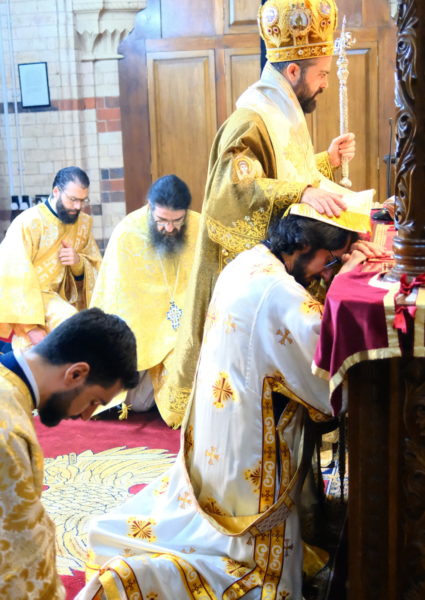 Την χειροτονία ετέλεσε ο Θεοφιλέστατος Επίσκοπος Μελιτηνής κ. Μάξιμος, συλλειτουργούντων πολλών κληρικών της Ιεράς Αρχιεπισκοπής Θυατείρων και Μεγάλης Βρεταννίας.