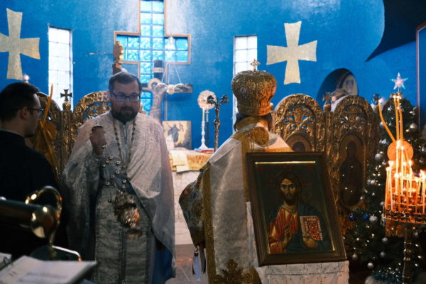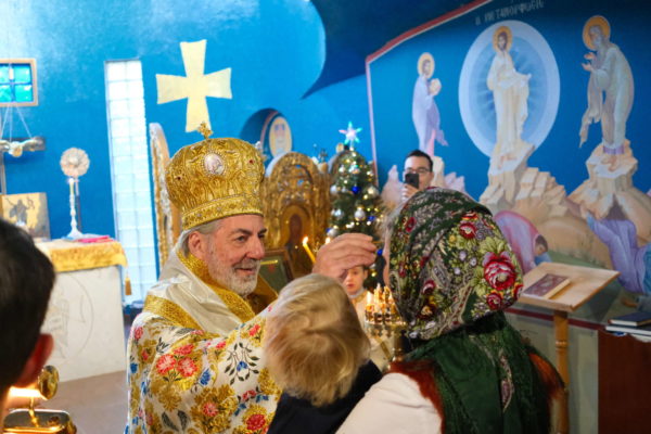 Στο τέλος της Θείας Λειτουργίας έχρισε τους πιστούς με έλαιο, όπως συνηθίζεται στην ουκρανική παράδοση, ενώ η χορωδία έψαλλε τα παραδοσιακά χριστουγεννιάτικα κάλαντα.