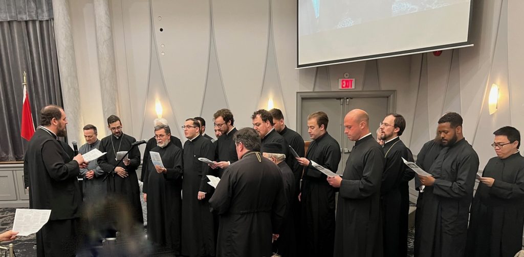 Ακολούθησε θαυμάσιο μουσικό διάλειμμα με τους φοιτητές και τους ιερείς. Τραγούδησαν μαζί όλοι οι συνδαιτυμόνες και δημιουργήθηκε όμορφη ατμόσφαιρα.