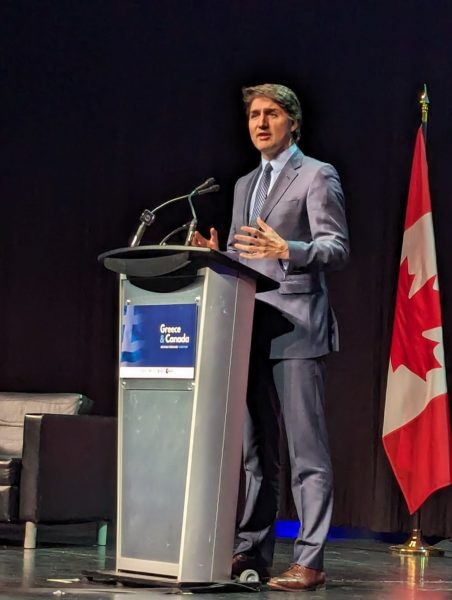 Ο πρωθυπουργός του Καναδά Ι. Τρουντώ ομιλεί στους Έλληνες του Τορόντο.