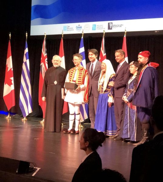 Ο εθνικός ύμνος ερμηνεύτηκε από την Αριάνα Κρις. Παρουσιάστρια της εκδήλωσης ήταν η υπέροχη Vassy Kapelos· ο Αρχιεπίσκοπος Σωτήριος, ο Πρωθυπουργός Trudeau και ο Πρωθυπουργός Μητσοτάκης, ήσαν οι τρεις ομιλητές. Ο Σεβασμιώτατος ξεκίνησε με μια συγκινητική εκτέλεση του ύμνου “Τη Υπερμάχω Στρατηγώ”, και μίλησε στην ελληνική και στην αγγλική για την Εθνική Παλλιγενεσία της Ελλάδος και την ιστορική σημασία της επίσκεψης του Πρωθυπουργού στον Καναδά. Οι Πρωθυπουργοί Trudeau και Μητσοτάκης απευθύνθηκαν εν συνεχεία προς τους καλεσμένους, οι οποίοι δέχθηκαν τις ομιλίες τους με μεγάλο ενθουσιασμό.