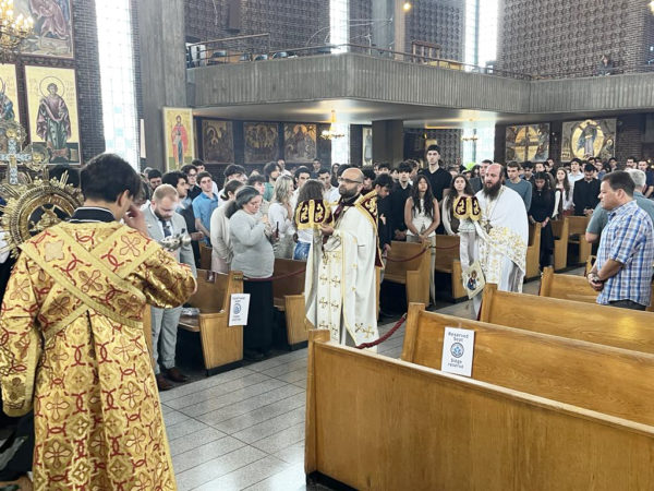 Την Κυριακή, 29 Ιουνίου 2025, ο Αρχιεπίσκοπος Καναδά κ. Σωτήριος, πλαισιωμένος από τους υπεύθυνους Νεολαίας της Ιεράς Αρχιεπισκοπής, π. Νικόδημο Κοντογιωργάκη και π. Τιμολέοντα Πράττα, τέλεσε τη Θεία Λειτουργία στον Ιερό Ναό Αγίου Γεωργίου Μόντρεαλ. Με πατρική αγάπη απηύθυνε λόγους ενθαρρυντικούς και πνευματικούς προς τη νεολαία μας, παροτρύνοντάς την να ενδυναμώσει την πίστη της και να διακονήσει ενεργά στην Εκκλησία. Πολλοί νέοι προσήλθαν στη Θεία Κοινωνία με βαθιά ευλάβεια. Σε αυτό το σημείο, η πρεσβυτέρα Jeannie Κωνσταντίνου παρουσίασε την κεντρική ομιλία της στους συμμετέχοντες σχετικά με το γιατί είναι σημαντική η επαγρύπνηση και τι πρέπει να προσέχουν οι ορθόδοξοι νέοι ενήλικες καθώς αναπτύσσονται στο ρόλο τους ως ηγέτες της Εκκλησίας μας σε αυτόν τον αιώνα. Το βράδυ, οι νέοι συμμετείχαν με ενθουσιασμό στο Ελληνικό Φεστιβάλ του Ιερού Ναού Τιμίου Σταυρού στο Λαβάλ.