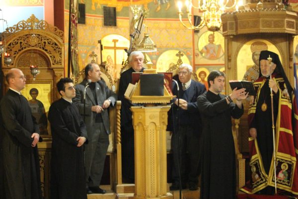 Πάνω από 600 άτομα παρακολούθησαν τον Μ. Εσπερινό και ανάμεσά τους η πρόεδρος της Κοινότητας Αγ. Νικολάου Αναστασία Σωτηροπούλου, η πρόεδρος του Αρχιεπισκοπικού Συμβουλίου Φιλόπτωχου Αδελφότητας Ζωή Βερούτη, η πρόεδρος της Ελληνικής Κοινότητας Τορόντο Μπέττυ Σκουτάκη, ο δημοτικός σύμβουλος του Τορόντο Νίκος Μαντάς και ο π. Δοσίθεος (από την Ι. Μονή Ταξιαρχών, Τέξας), η Γερόντισσα Αλεξία και αδελφές από την Ι. Μονή Πατροκοσμά.